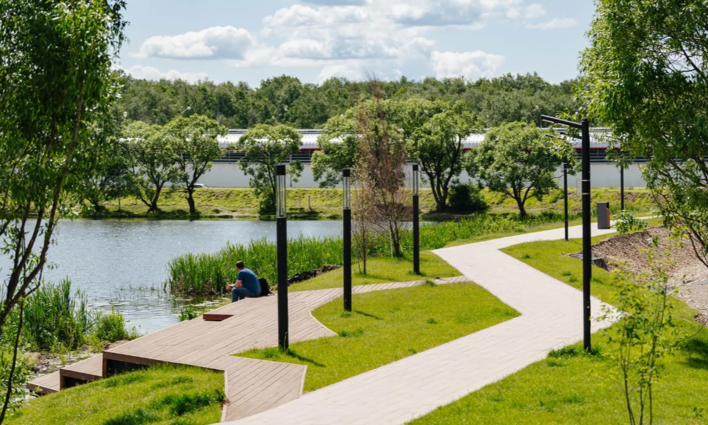 - Собственный парк, пруд